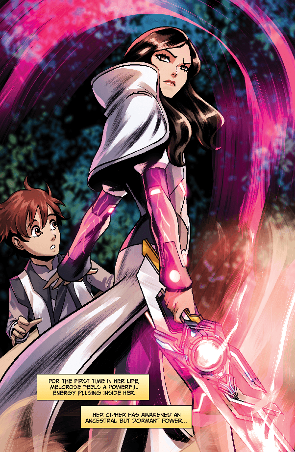 Melcrose, a rogue human prodigy bound to rare Pink Adallium, is a freedom fighter shaped by loss and hunted relentlessly by Temeluchus, the all-powerful emperor of the Gray Alliance.