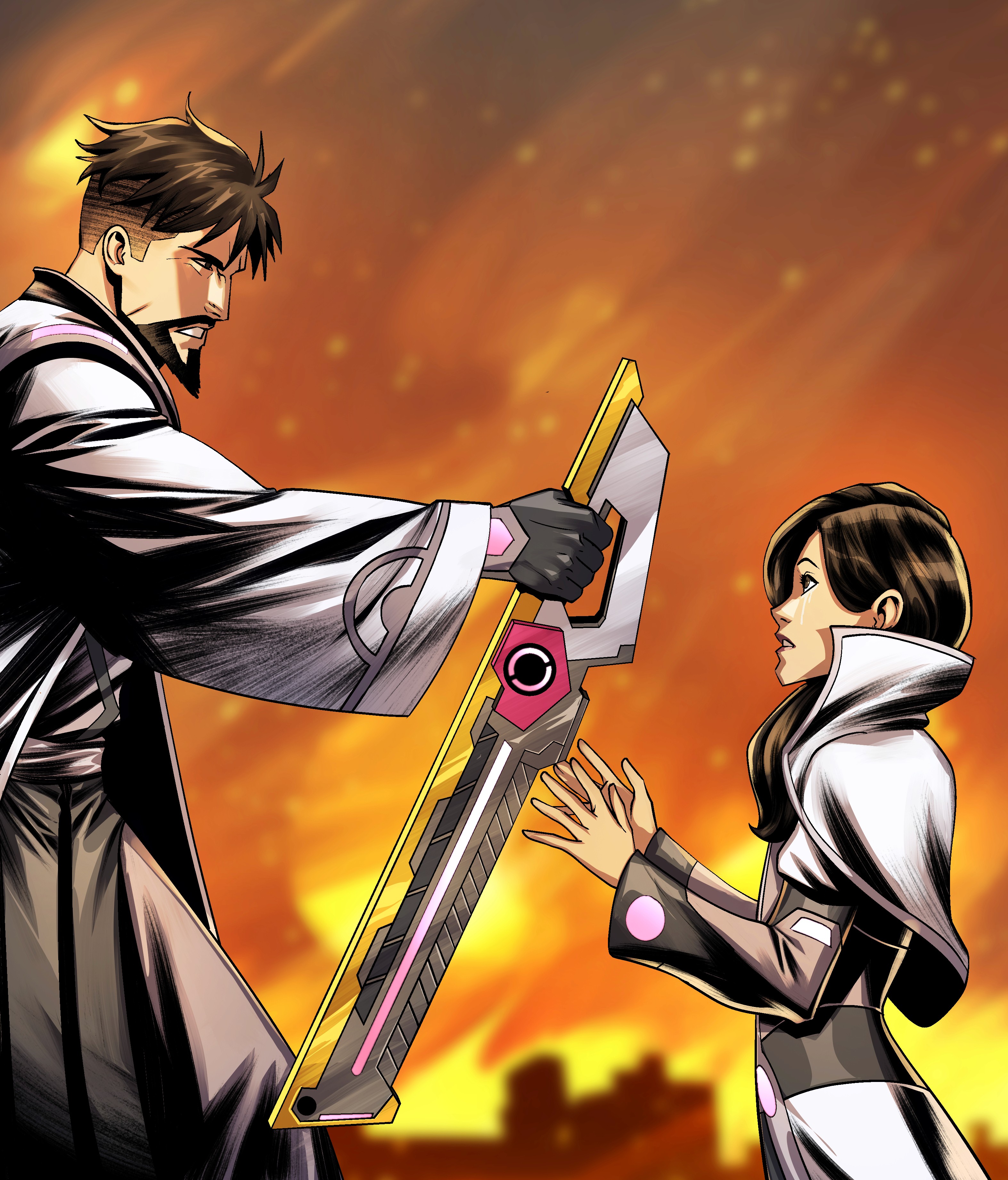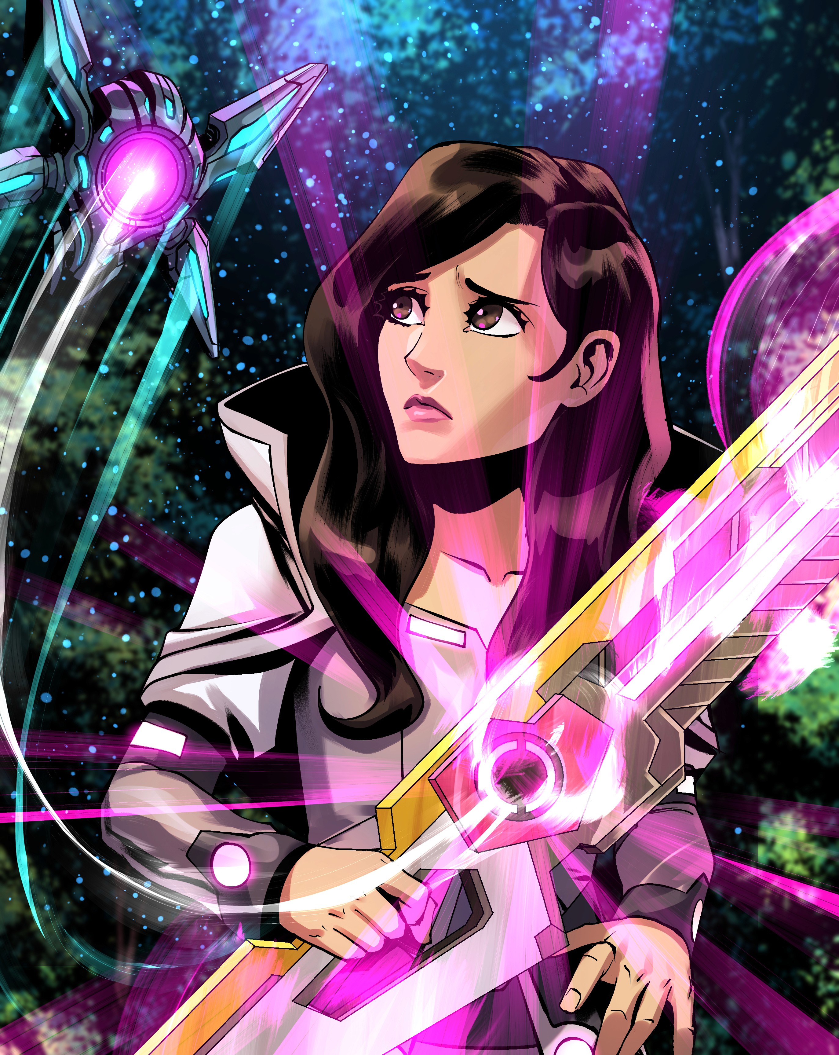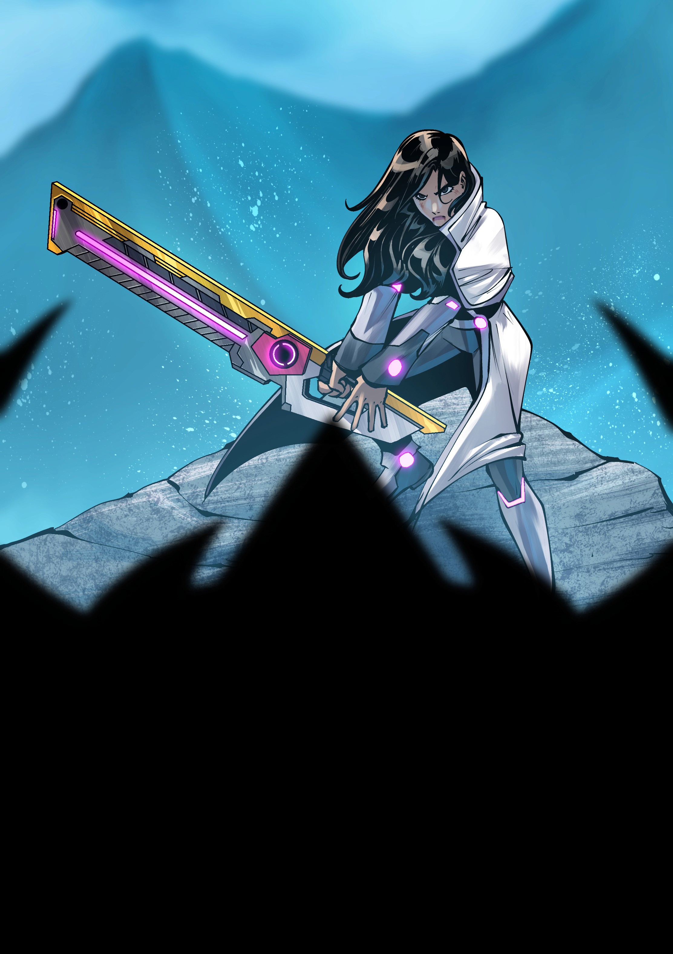 The blade is neuro-sympathetic, responding faster than conscious thought. It adapts to Melcrose’s fighting style, adjusts weight mid-swing, and remembers previous strikes. In combat, the blade ignites with pink Adallium flares — not just as energy, but as a living archive of Melcrose’s bloodline. When pushed to its limit, the Adallablade emits Resonance Echoes, flashing moments from the past — including those Melcrose herself has never lived — as if the weapon carries the memory of her ancestors.