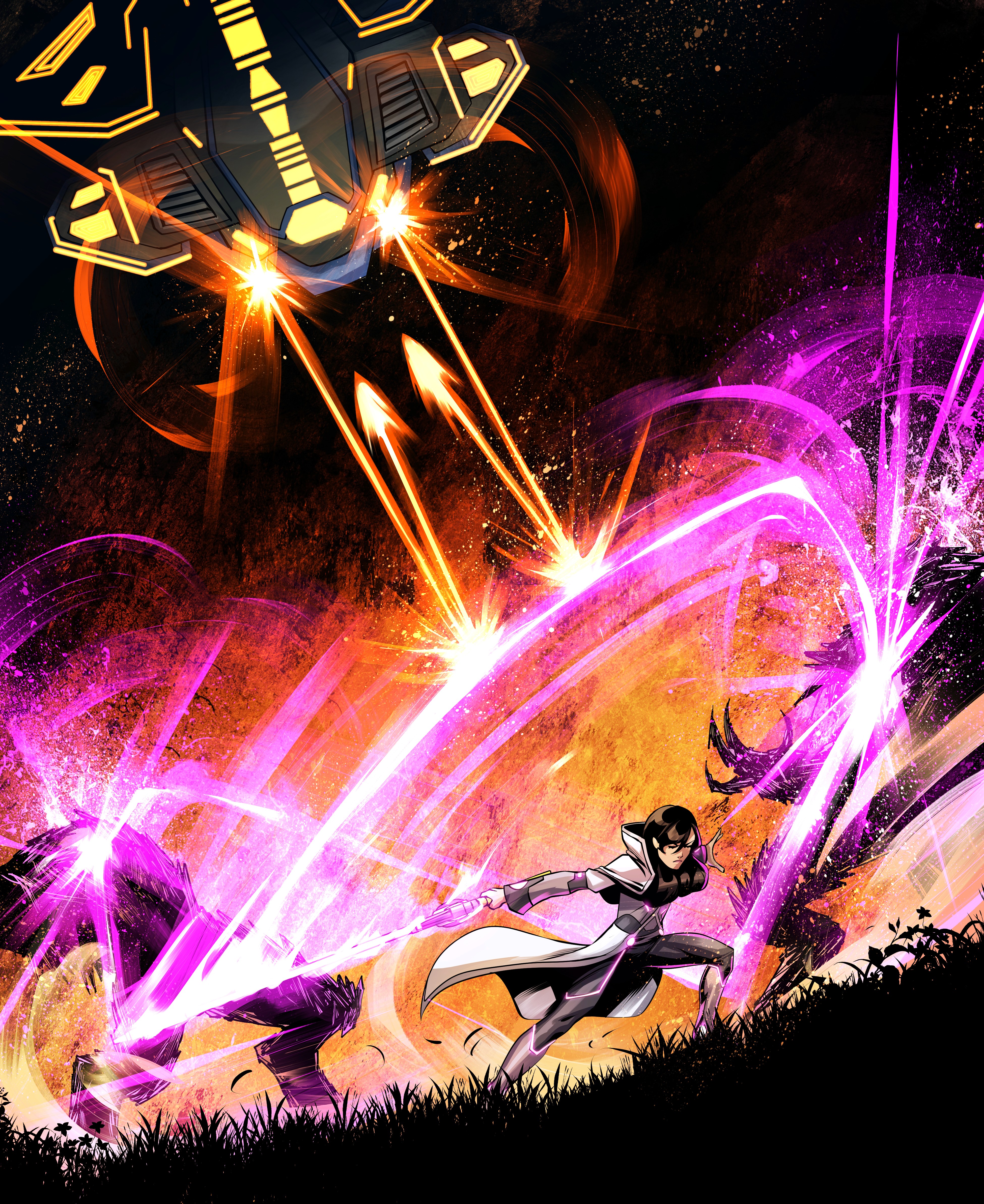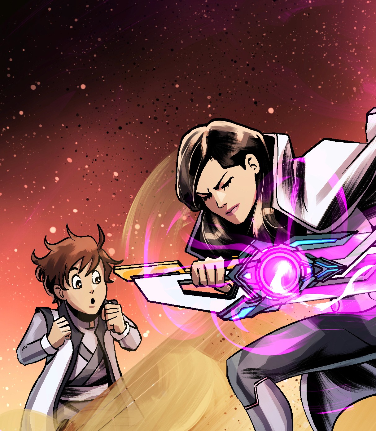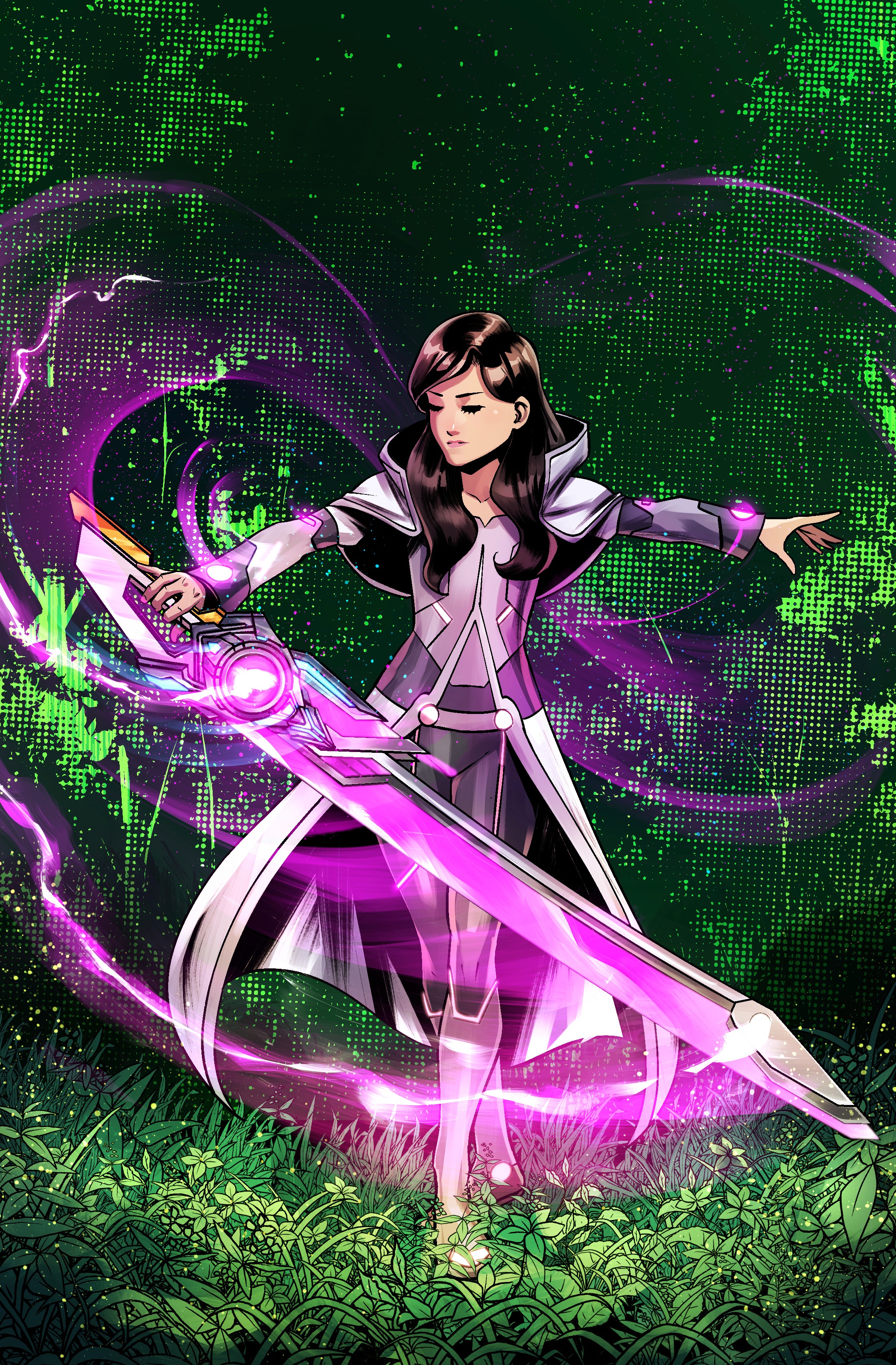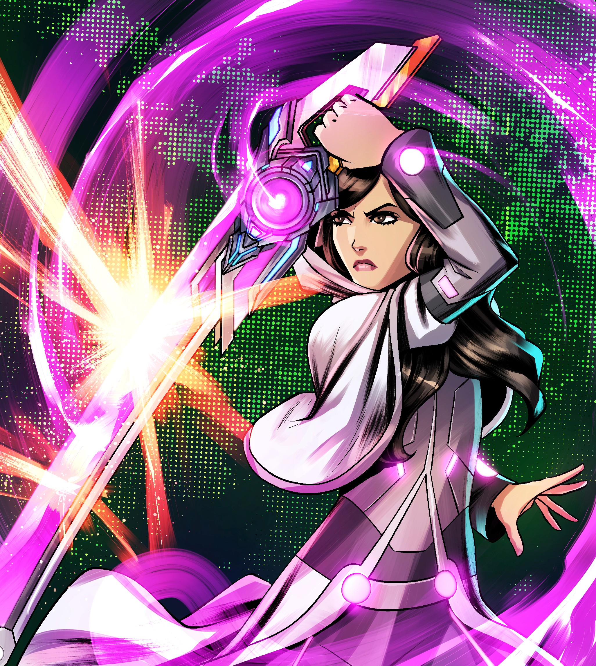 The blade is neuro-sympathetic, responding faster than conscious thought. It adapts to Melcrose’s fighting style, adjusts weight mid-swing, and remembers previous strikes. In combat, the blade ignites with pink Adallium flares — not just as energy, but as a living archive of Melcrose’s bloodline. When pushed to its limit, the Adallablade emits Resonance Echoes, flashing moments from the past — including those Melcrose herself has never lived — as if the weapon carries the memory of her ancestors.